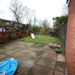 To the front of the property is a driveway, and to the rear is a spacious enclosed garden with a paved area and lawn.